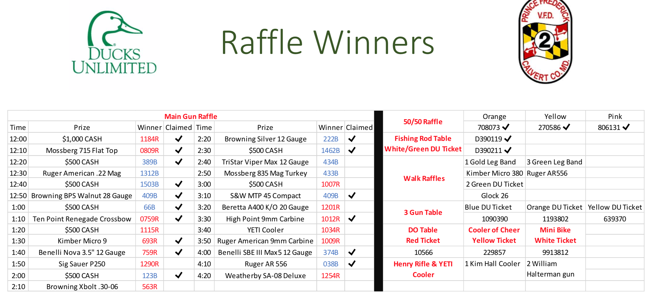 If you purchased a ticket, but could not make the event, here is an updated list of the winners. Please come forward to claim your prize.