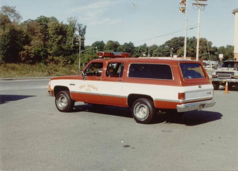 Also in 1984, Engine 202 was totaled while responding to a fire in the Plum Point area injuring three firefighters. A 1984 Henrickson Custom/Pierce with a 1000 gpm pump and 750-gallon tank replaced Engine 202. 1985 ended a 29-year era for Chief Horsmon as he was forced to resign due to a conflict of interest with his new county job. Before Chief Horsmon’s resignation, he renamed the department, Prince Frederick Volunteer Fire Department which allowed us a more positive identity to the area that we have a prime responsibility for. In 1986, a new Car 2 was purchased and was a Chevrolet Suburban. In 1988, the Tanker was replaced with a Mack/4Guys Tanker that featured a 1000gpm front mounted pump and a 3000-gallon tank.