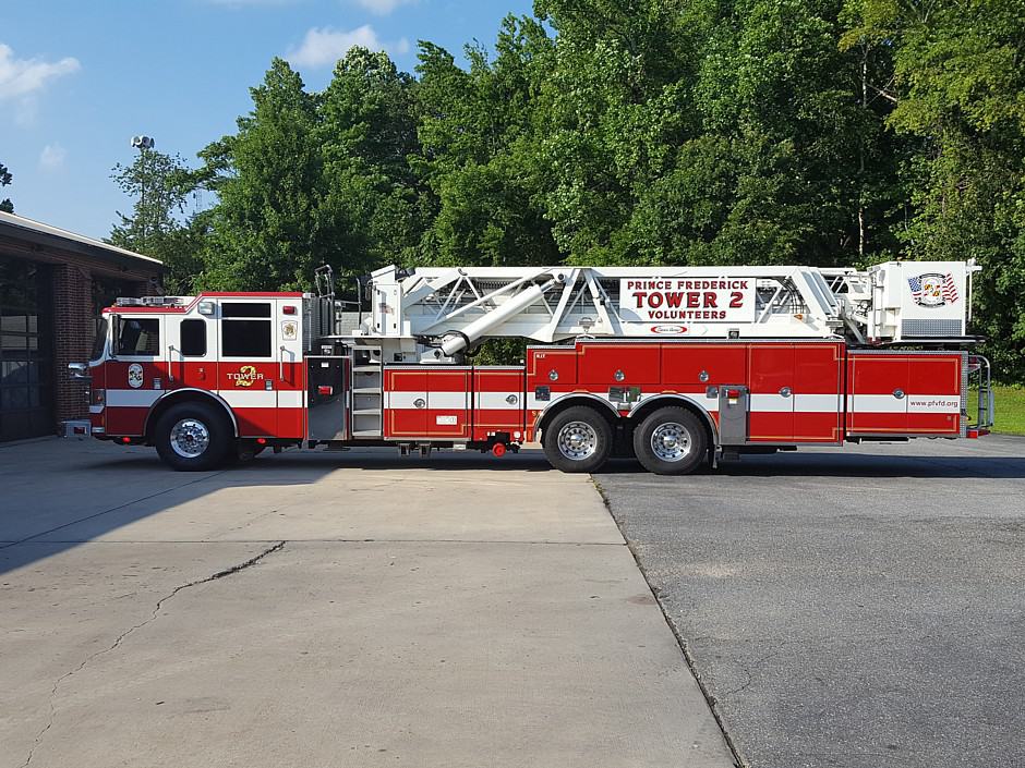 • Pierce Aerial 95′ Mid Mount Ladder, Large Bucket