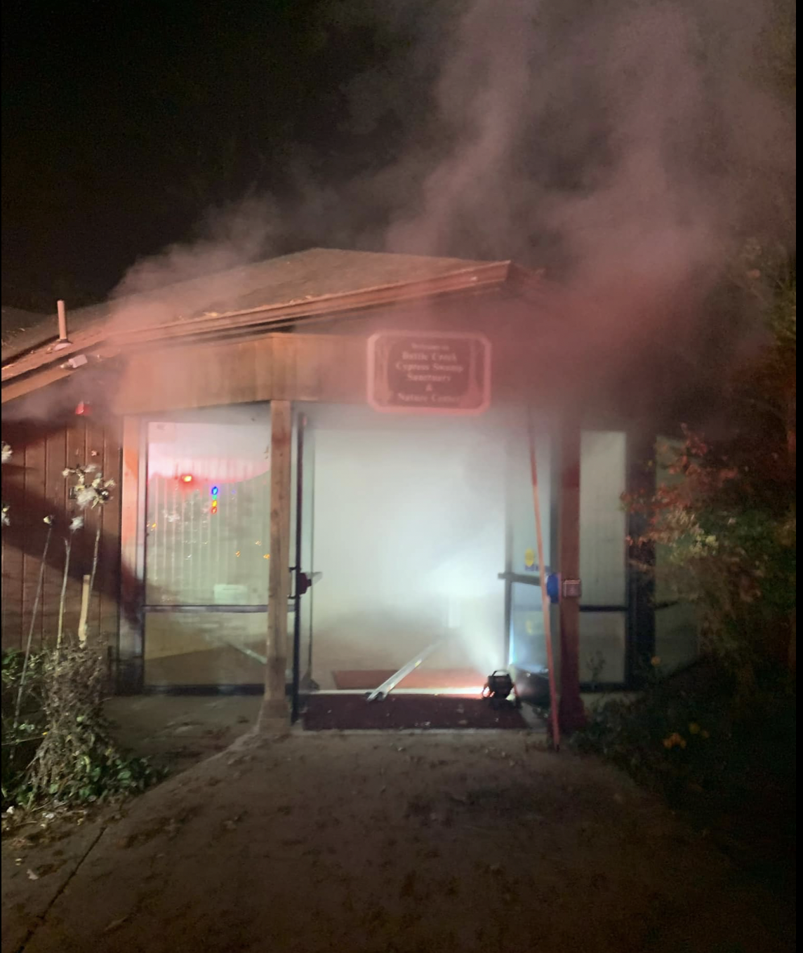 On Saturday, November 5, 2022 around 7 p.m. the Prince Frederick Volunteer Fire Department and surrounding departments were called to the main building for a fire alarm. In the majority of incidents where crews are called in, the alarms generally (and thankfully) are not anything of significance. Unfortunately, this was not the case for the nature center on the Battle Creek Cypress Swamp property that houses the animals.