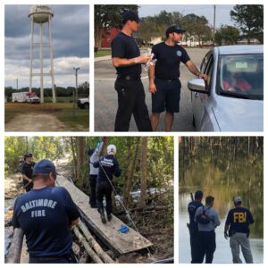 While on the ground, first responders from both departments even constructed a bridge to help gain access to houses impacted and cut off by water. They also worked hand-and-hand with the FBI doing checks on citizens in the area.