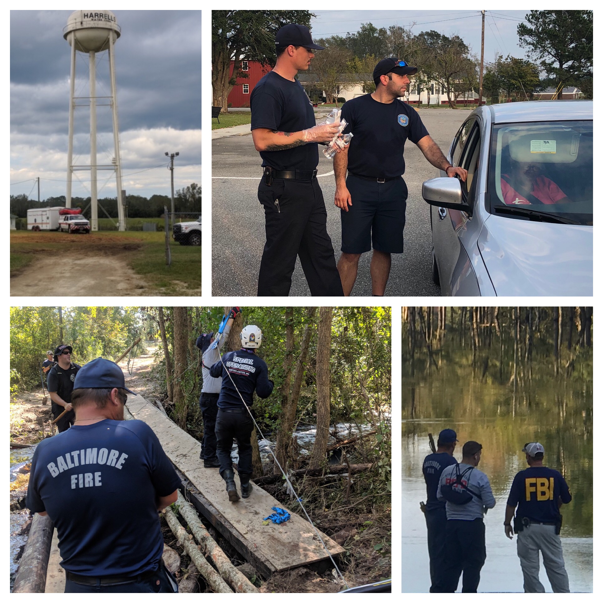 Robbie Helms, Firefighter for Howard County Fire and Rescue, launched without hesitation to the south to assist with humanitarian efforts. Helms and his co-workers teamed up with a crew from Baltimore City Fire Department to gain access to homes and deliver food and water to survivors.