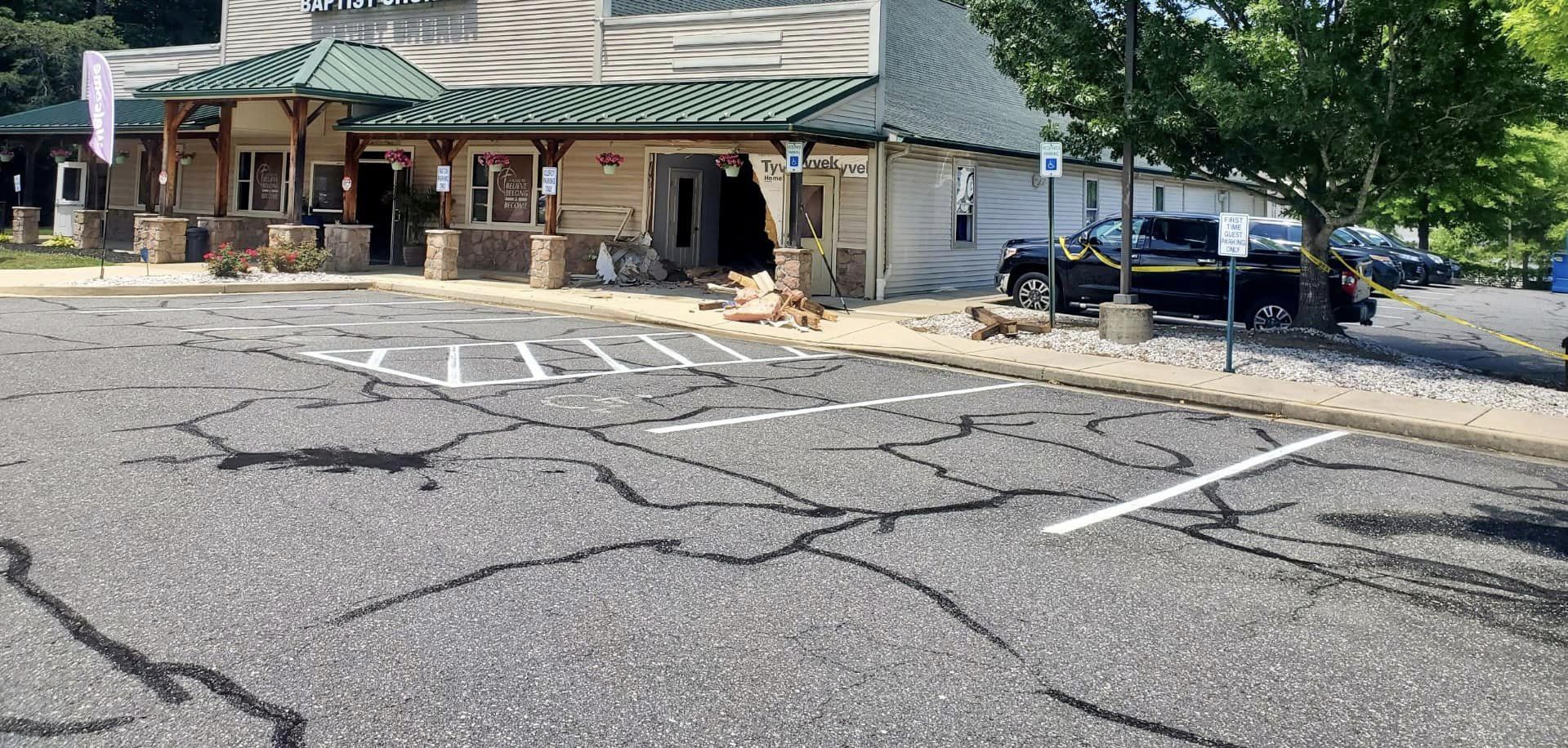 When the initial units and Chief 2-A (Holzberger) arrived crews located a car inside a church in the 2100 block of S Solomons Island Road.
