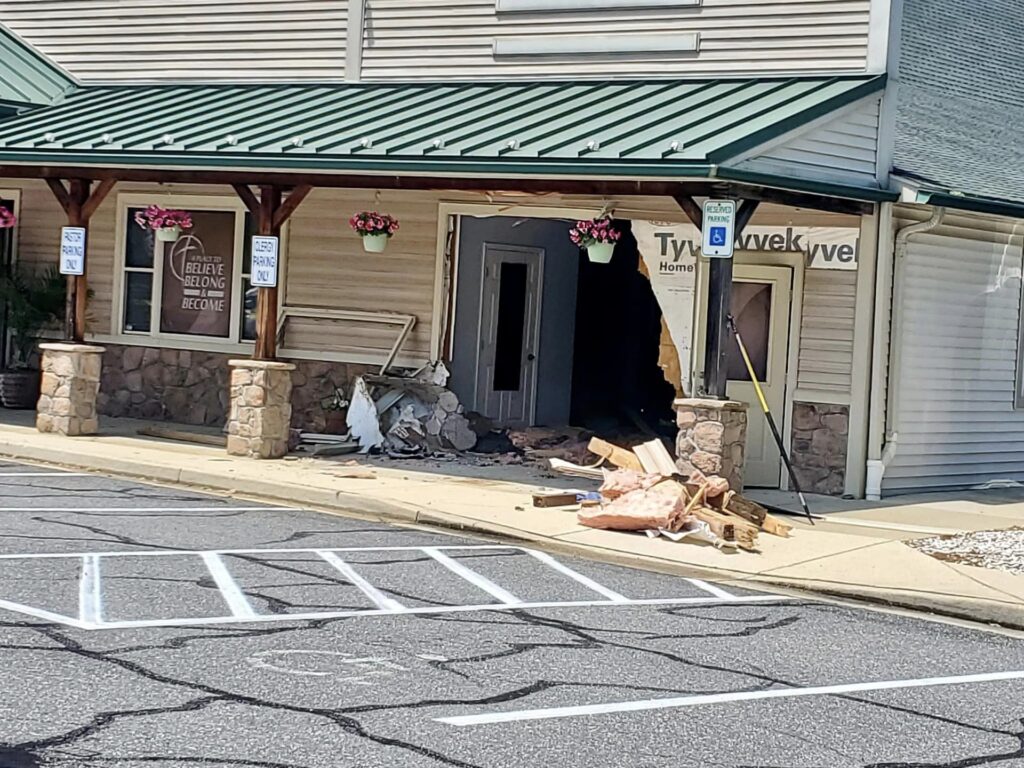 Earlier today, Company 2 (Engine 22 and Squad 2) responded to a car into a building in Prince Frederick, Md.