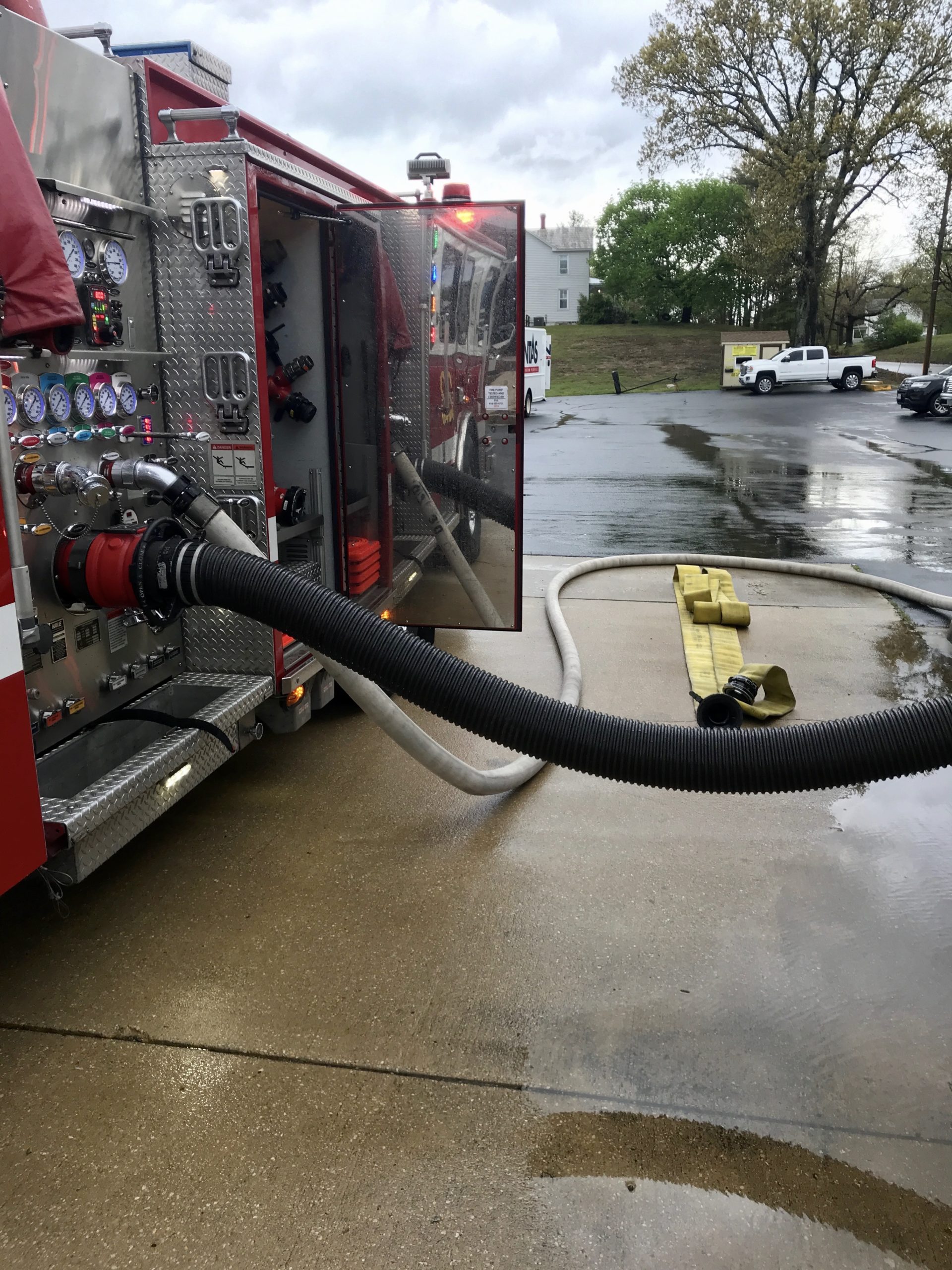 On April 13, 2020 around 8:45 a.m. crews from Company 2 and surrounding counties responded to a propane truck overturned and leaking in the area of Huntingtown Road and White Marsh Court. Water supply was established and the driver of the truck was unharmed. Units operated on the scene for 5 hours.