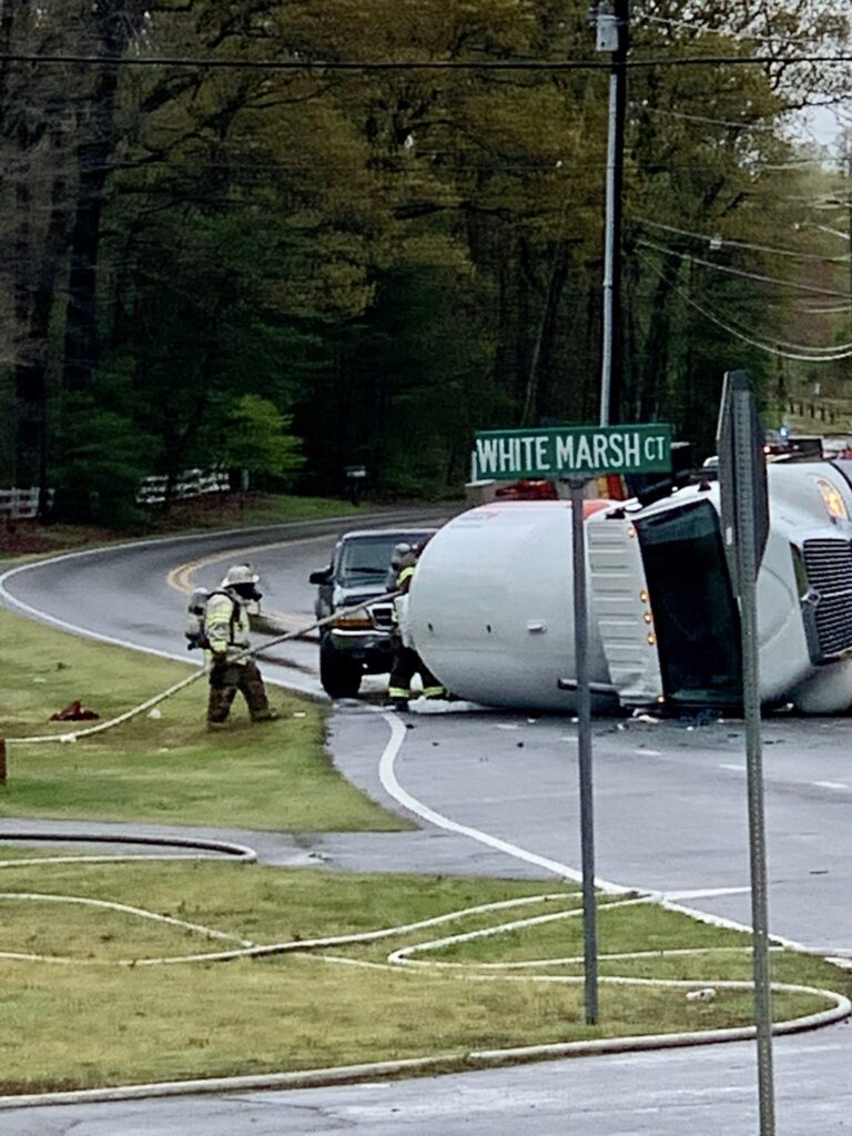 Photo of truck overturned credit: Huntingtown Volunteer Fire Department