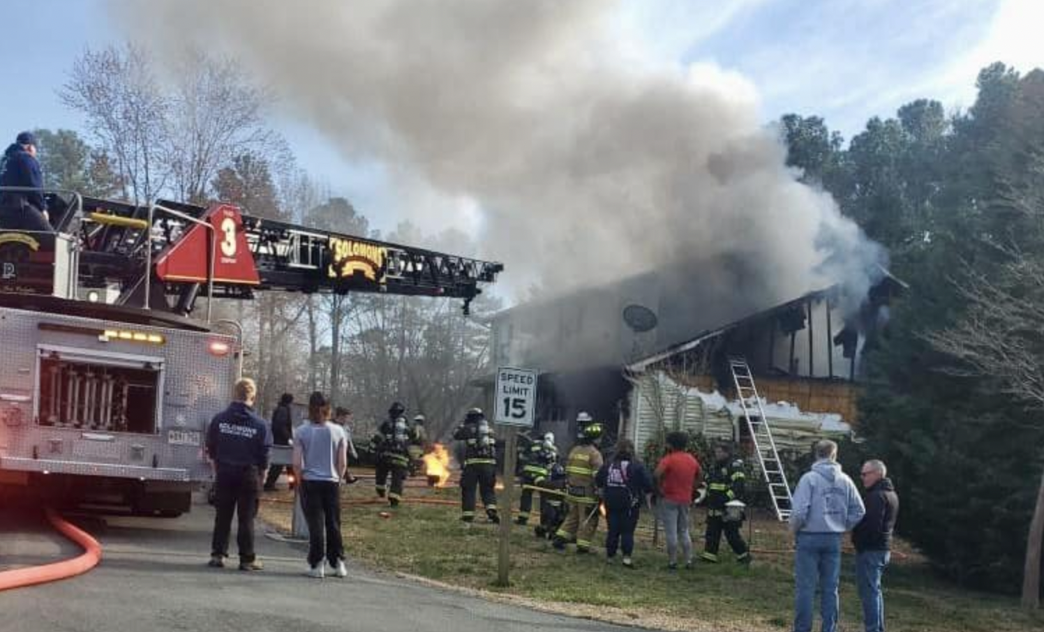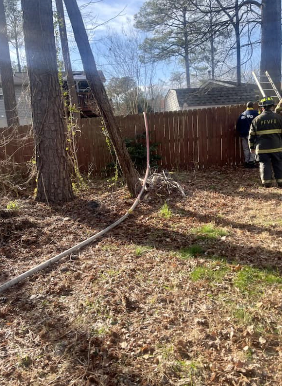 Engine 21 deployed a line from the street to reach the house and worked closely inside the location with Chief 2-B.