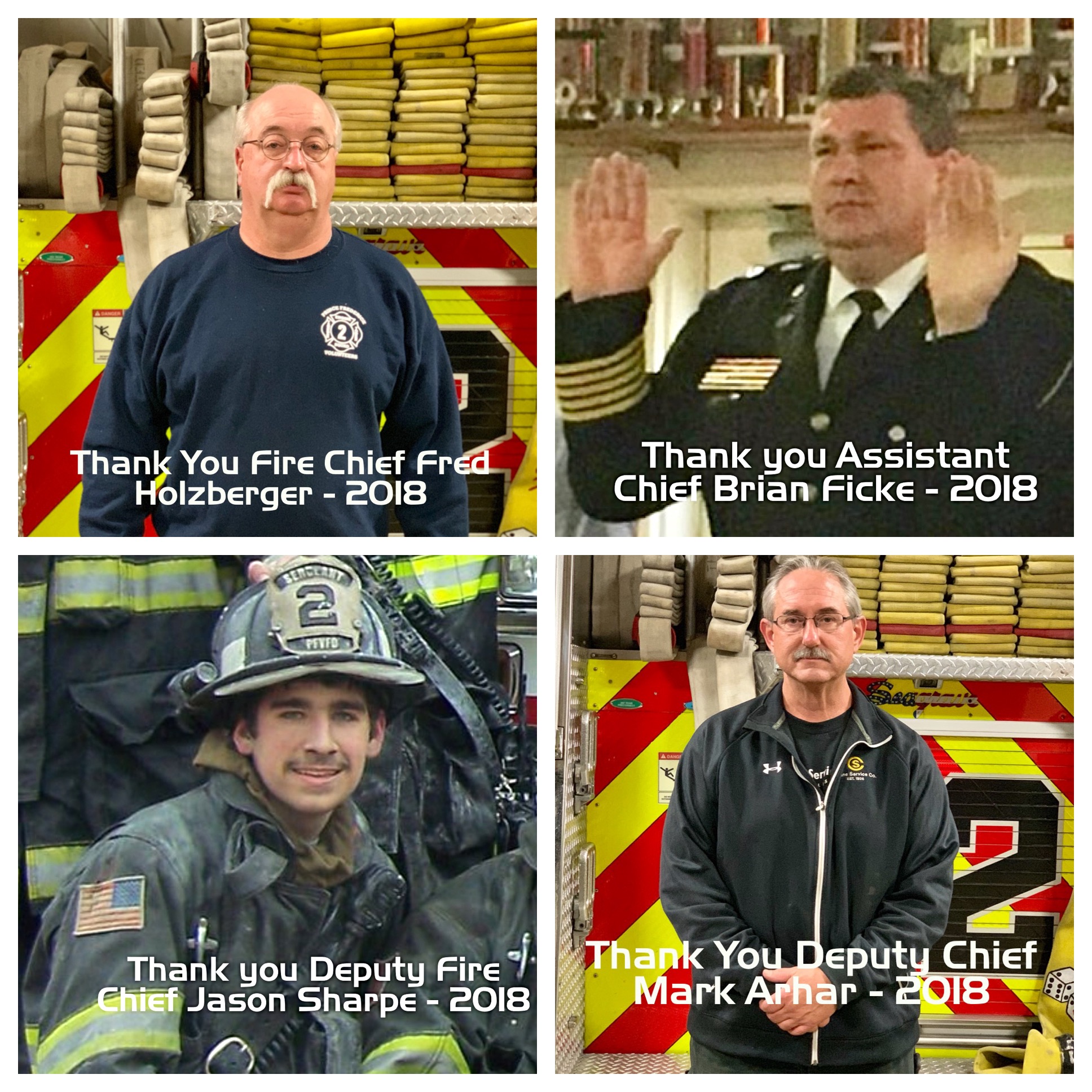 We would like to thank our outgoing chiefs Fred Holzberger, Brian Ficke, Jason Sharpe and Mark Arhar for their time, commitment and dedication to our department in 2018.