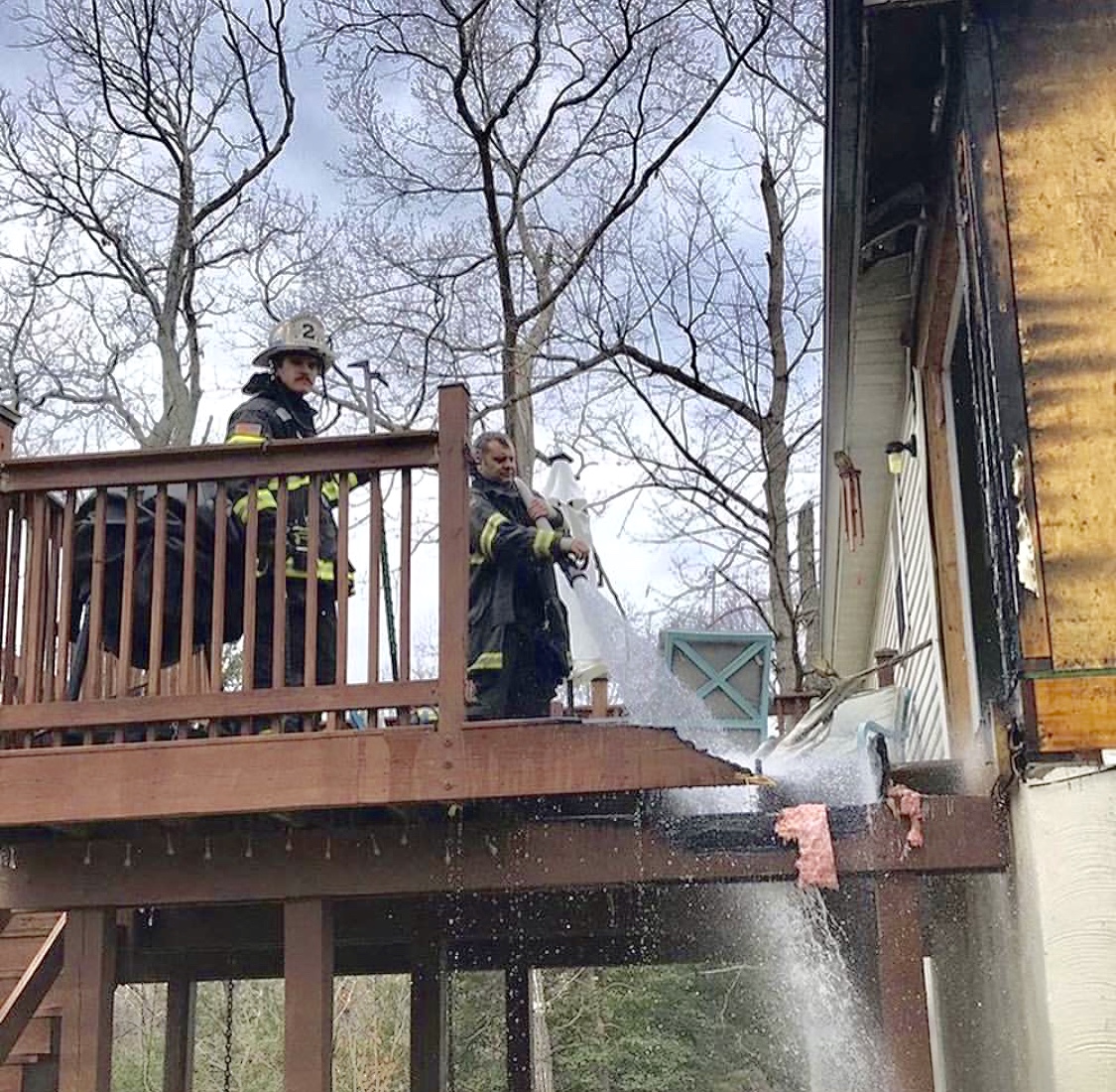 On Friday, April 5, 2019, Engine 21, Tower 2 and Chief 2-B responded to the 11400 Block of Long Bow Court in the Chesapeake Ranch Estates for a house fire. Arriving units from Solomons Volunteer Fire Department found a fire on the back deck with extension to the exterior of the single family home.