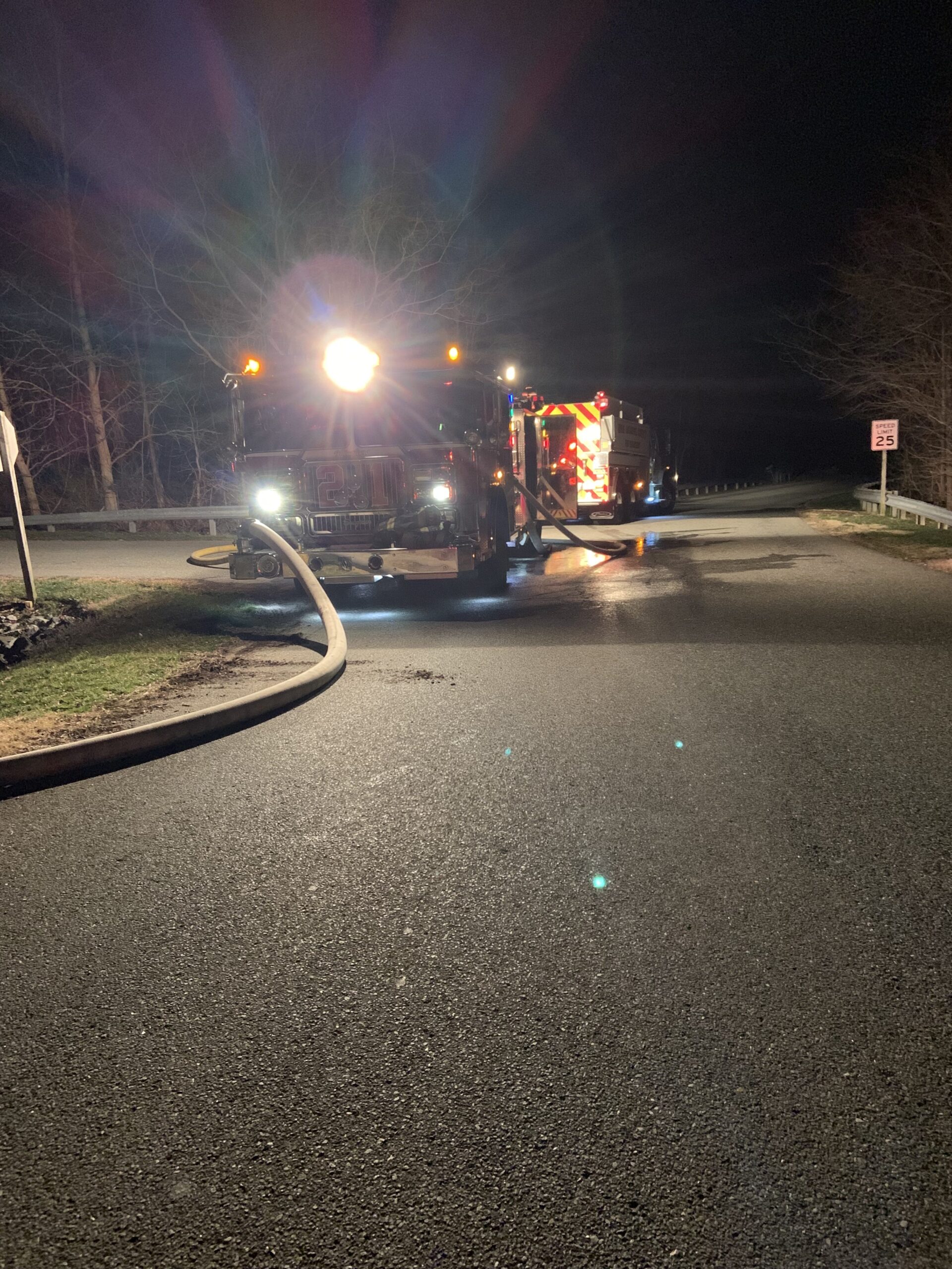Engine 21, Chief 2 and the crew operated at the fill site and ultimately filled tankers supporting the fire ground. Throughout the overnight hours, Engine 21 completed 33 fills totaling approximately 99,000 gallons of water before a secondary water fill site was assigned by Anne Arundel.