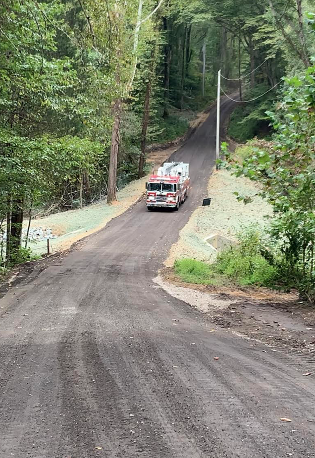 On September 25, 2020, the new crossing at Hunting Farms Lane opened for the first time since the summer storm. The new road is rated for 80,000 lbs.