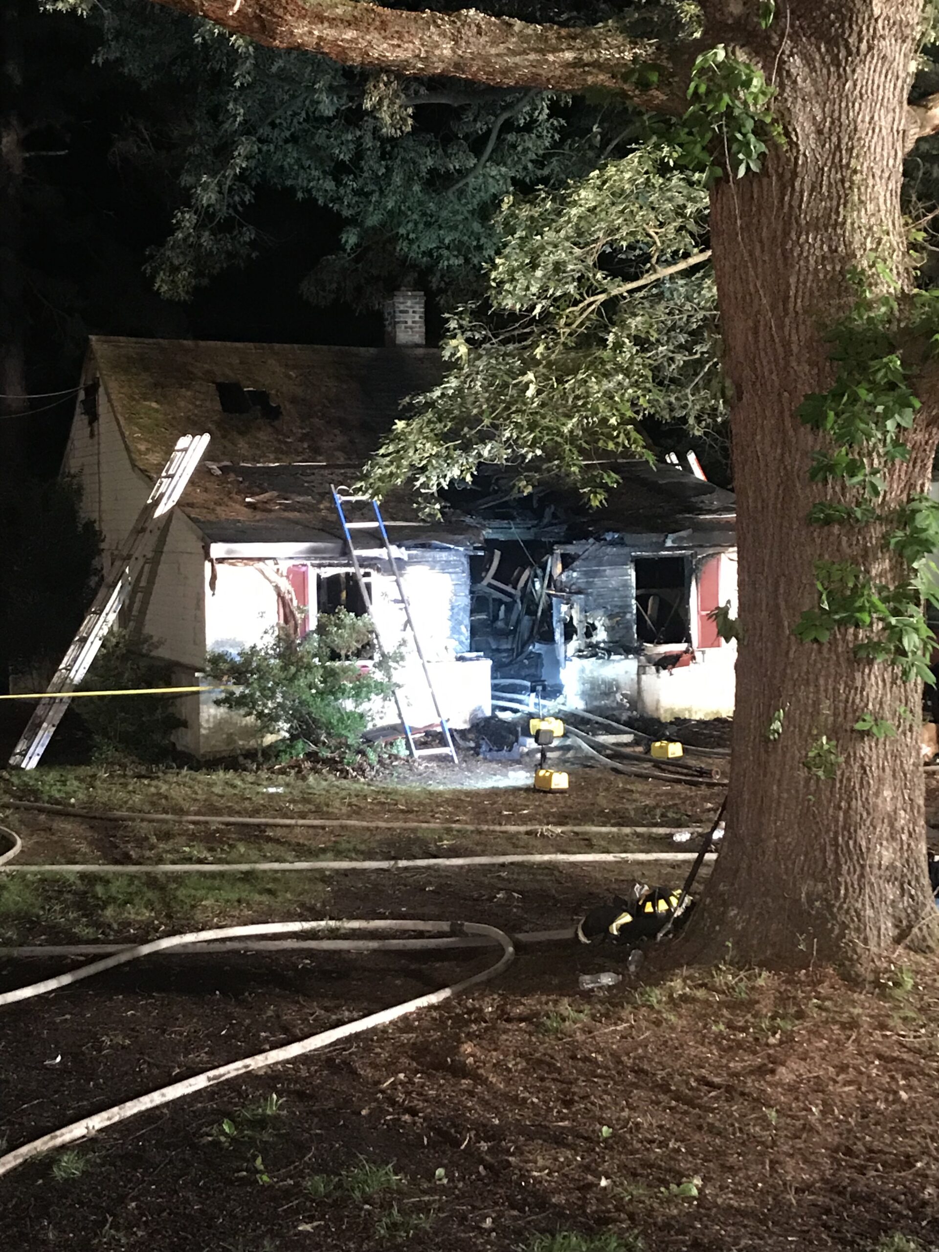 On May 27, 2019 around 10:30 p.m. Company 2 was dispatched to the St. Leonard area for a working house fire. Engine 21, Tanker 2, Tower 2 all responded to the 2500 block of Lloyd Bowen Road where upon arrival fire was showing from a one-story home. Those flames extended into the front and middle of the house with extension to the attic area.