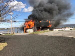 On April 19, 2018, Tower 2 and Tanker 2 were dispatched to the Rivers Edge restaurant on Benedict Avenue for a report of a large structure fire. Companies arrived in the Town of Benedict to find a one-story restaurant on the water with fire throughout. According to the fire marshal the high winds played a factor with how the flames spread.